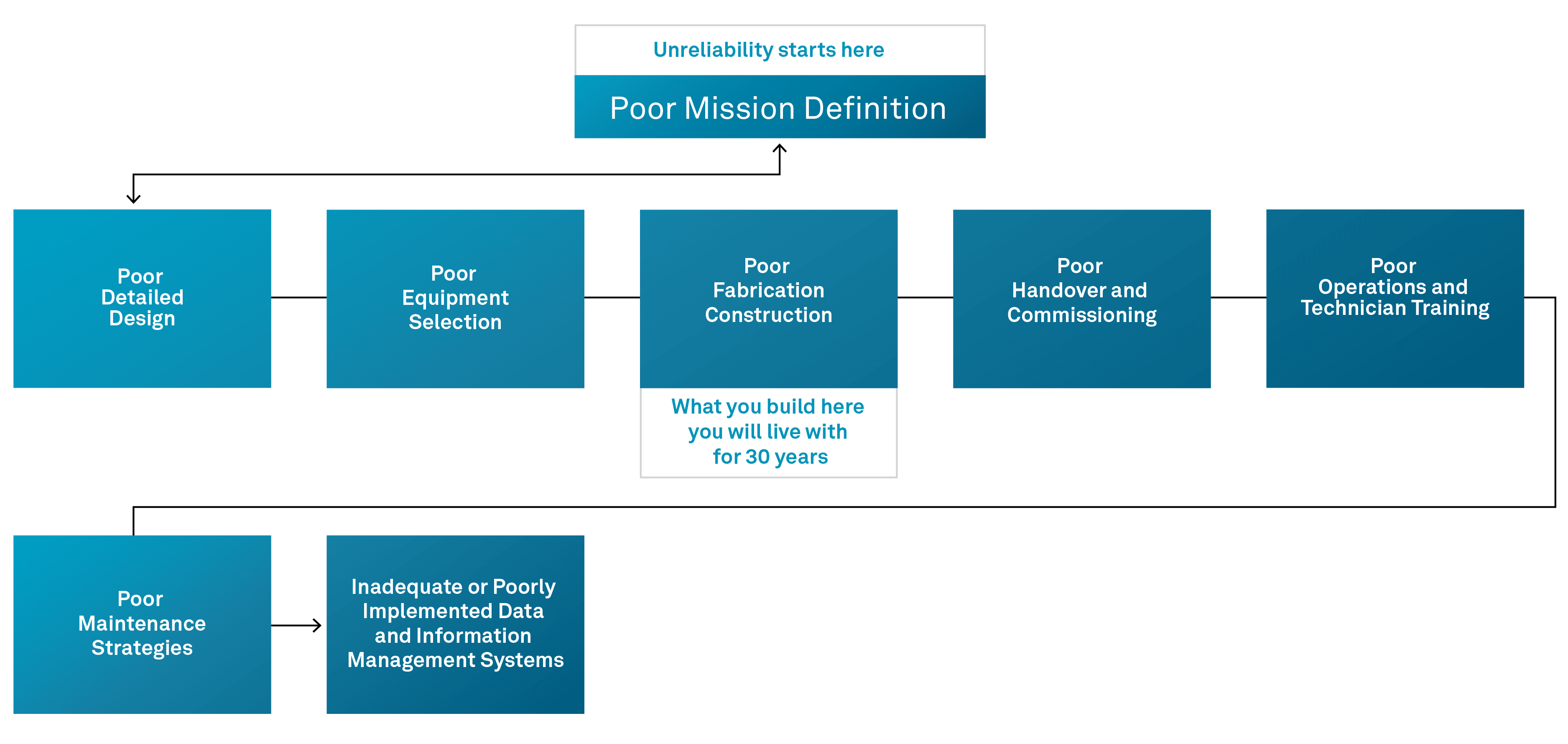 When project objectives are unclear or not aligned with business outcomes, reliability requirements get overlooked. Without a well-defined mission, teams often under-specify performance standards, leaving operators with assets that don’t meet long-term operational needs.